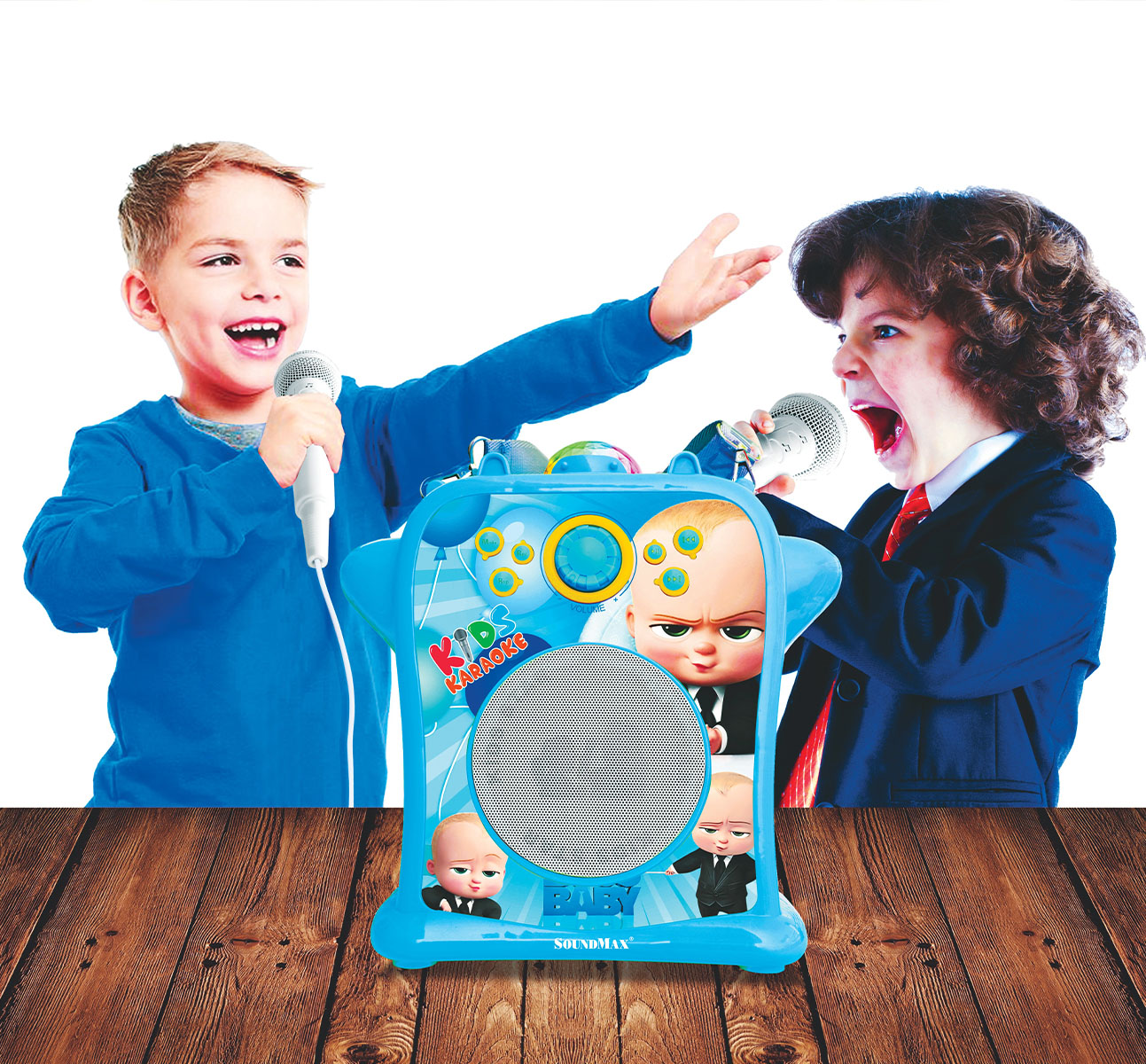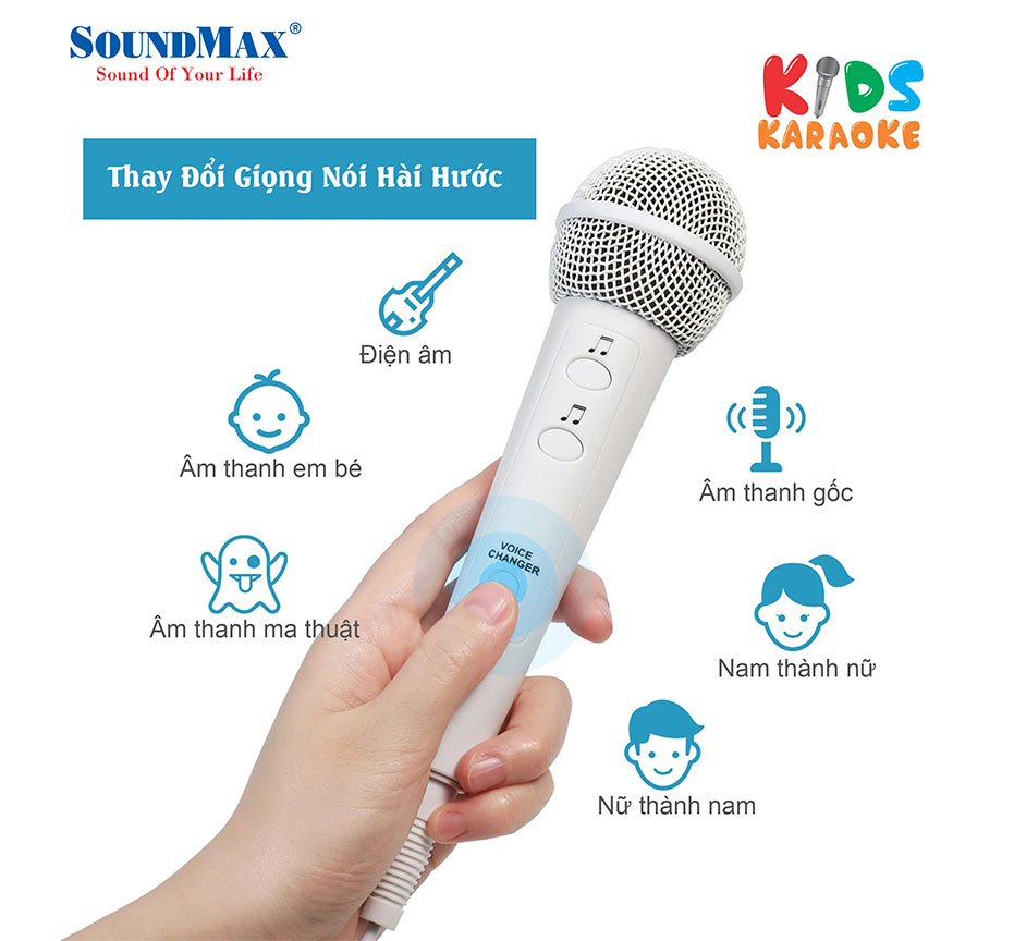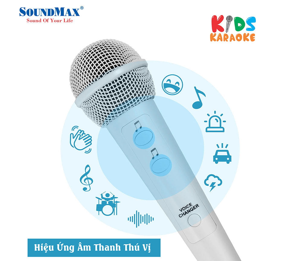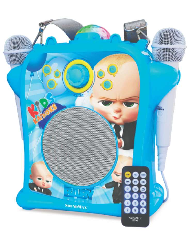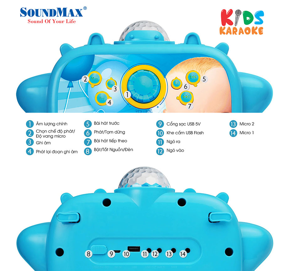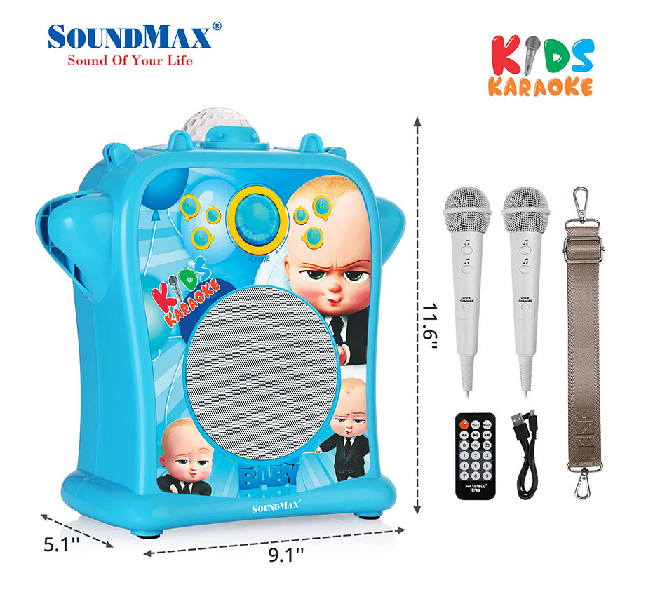 SoundMax Kids - Loa di động dễ thương cho các bé, hỗ trợ Bluetooth, USB, karaoke, AUX in, AUX out, đèn LED RGB lung linh huyền ảo như "vũ trường mini".