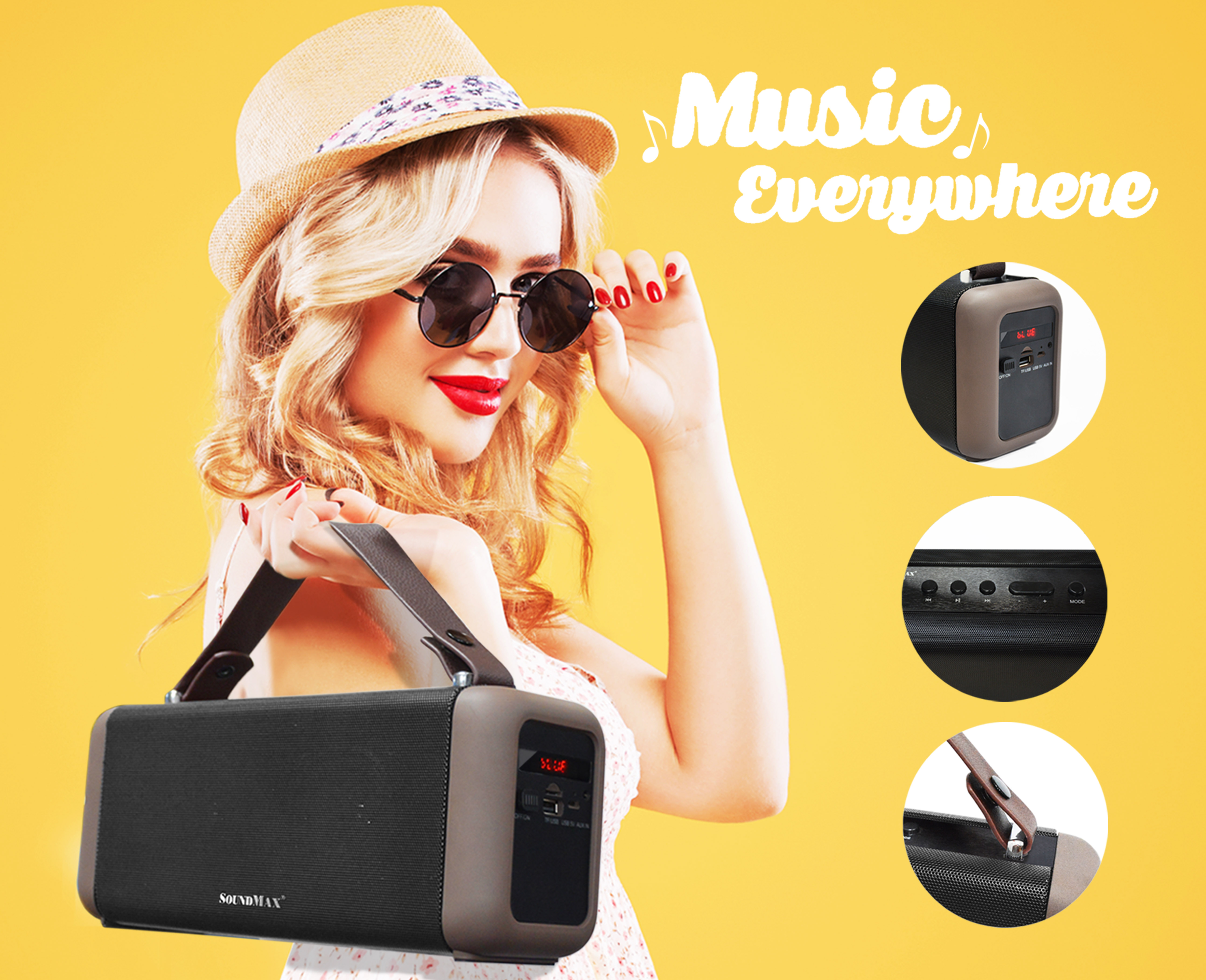 SoundMax M-3 - Loa bluetooth di động, hỗ trợ chơi nhạc qua USB, karaoke