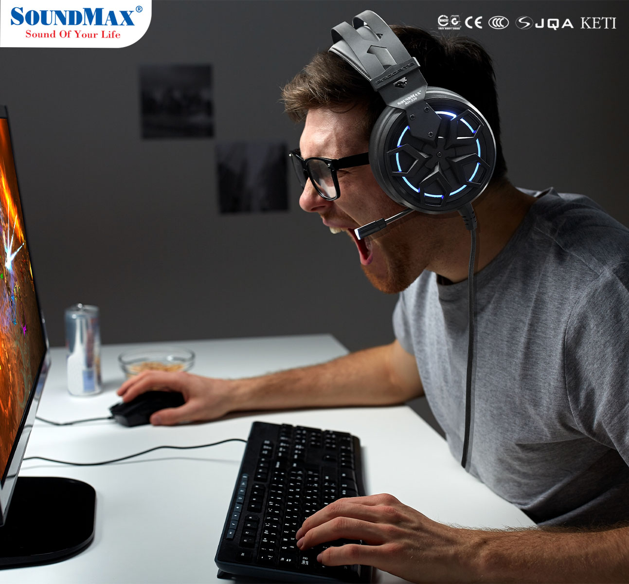 Sản phẩm SoundMax AH-330 thuộc dòng sản phẩm tai nghe chơi game được trang bị micro khử ồn bên củ tai để phục vụ cho việc giao tiếp với đồng đội trong lúc khám phá thế giới game rộng lớn hoặc bàn kế hoạch tác chiến trong một chiến trường nảy lửa.