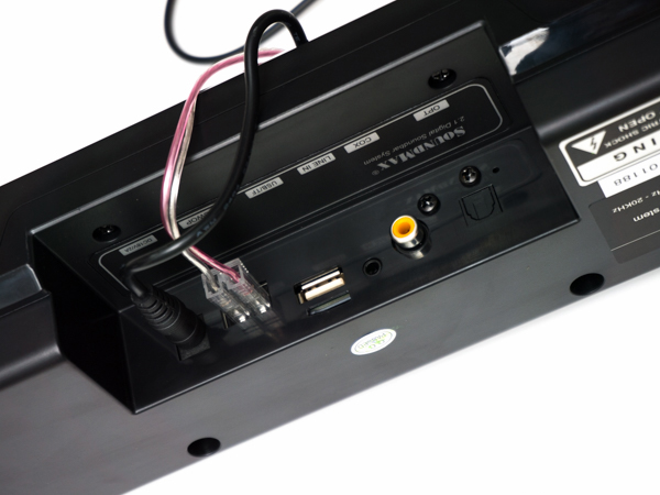 In terms of connectivity, SoundMax SB-217 is compatible with several external sources such as TV, DVD, laptop-based broadcasting devices, smartphone…through Optical, Coxial (TV, DVD) and AUX (smartphone, tablets, tablets), USB and SD cards. There is also built-in Bluetooth feature that enable streaming audio from your devices wirelessly.