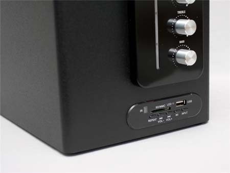 Apart from the ability to choose between 2 analog sound input channel (RCA 3,5mm), Soundmax A-2117 also supports various digital sound extensions (MP3, WMA or WAV) directly from USBs or SD cards. In addition, the big volume-bass-treble control buttons will bring you a great deal of convenience thanks to their smooth rotation. Soundmax also apply Bass-reflex technology for not only the subwoofer but also its satellites. This design potraits Soundmax’s ambitous of creating the most qualified bass sound from their system in order to stay ahead of any competitors in the price range.