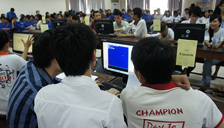 The contest took place extremely aggressive and excited with the dynamics of the students of information technology. The contest was an opportunity for the students to be rubbed expertise, learn and exchange knowledge to improve themselves. The contest is also home to the detection of the best student programming, selection and training established team to participate in the Science Olympiad National Student 2013.