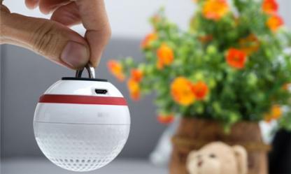SoundMax R-100 looks like a golf ball with a modern design. It can be placed on a desk, and with a hook at the bottom, it can be easily mounted anywhere.