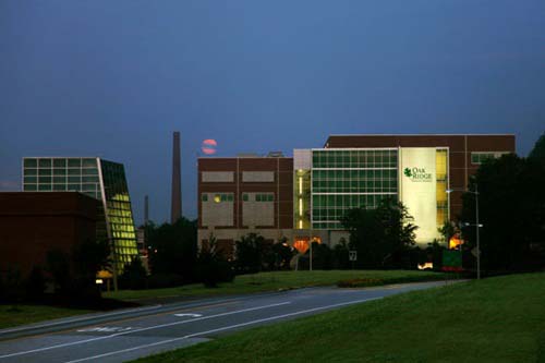 Trung tâm nghiên cứu máy tính quốc gia Oak Ridge (phải) và Visitor Center (trái) ở Oak Ridge (Tennessee, Mỹ).