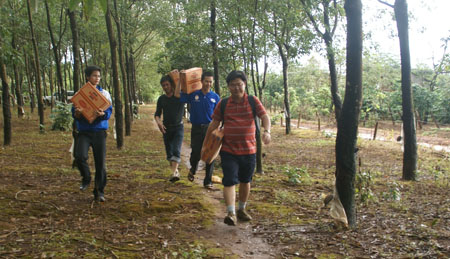 Ban Giám Đốc công ty SOUNDMAX di chuyển khoảng 1km vào điểm đóng quân của các chiến sĩ