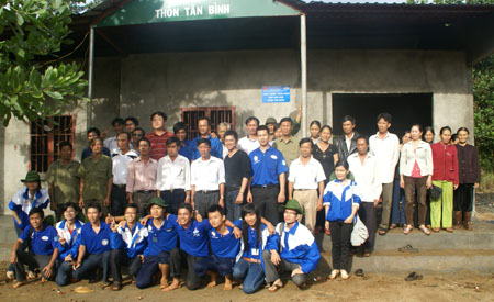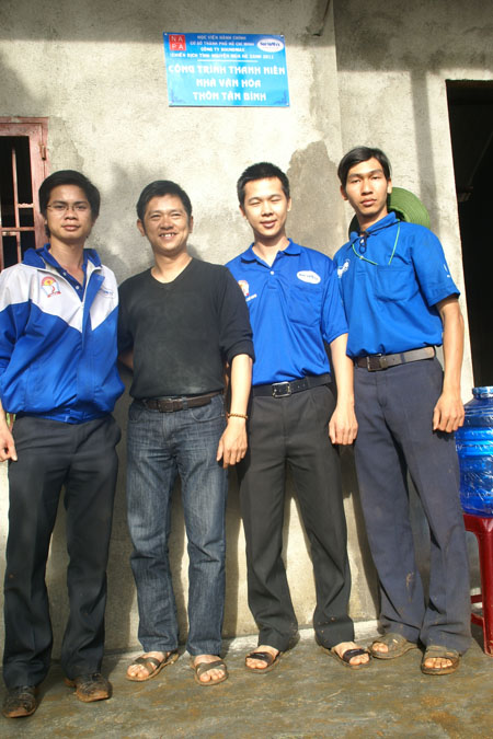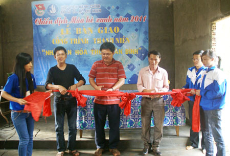 Anh Nguyễn Thanh Phong ( Phó Tổng Giám đốc ) cắt băng bàn giao Nhà Văn Hóa thôn Tân Bình.