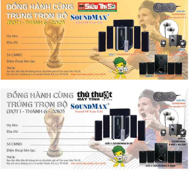 Để tham gia chương trình, bạn chỉ việc cắt phiếu tham gia, điền đầy đủ thông tin và gửi về tòa soạn. Và cuối mỗi đợt, ban tổ chức sẽ tiến hành bốc thăm từ số phiếu bạn đọc tham gia để chọn những bạn đọc may mắn được trao tặng sản phẩm loa SoundMax.