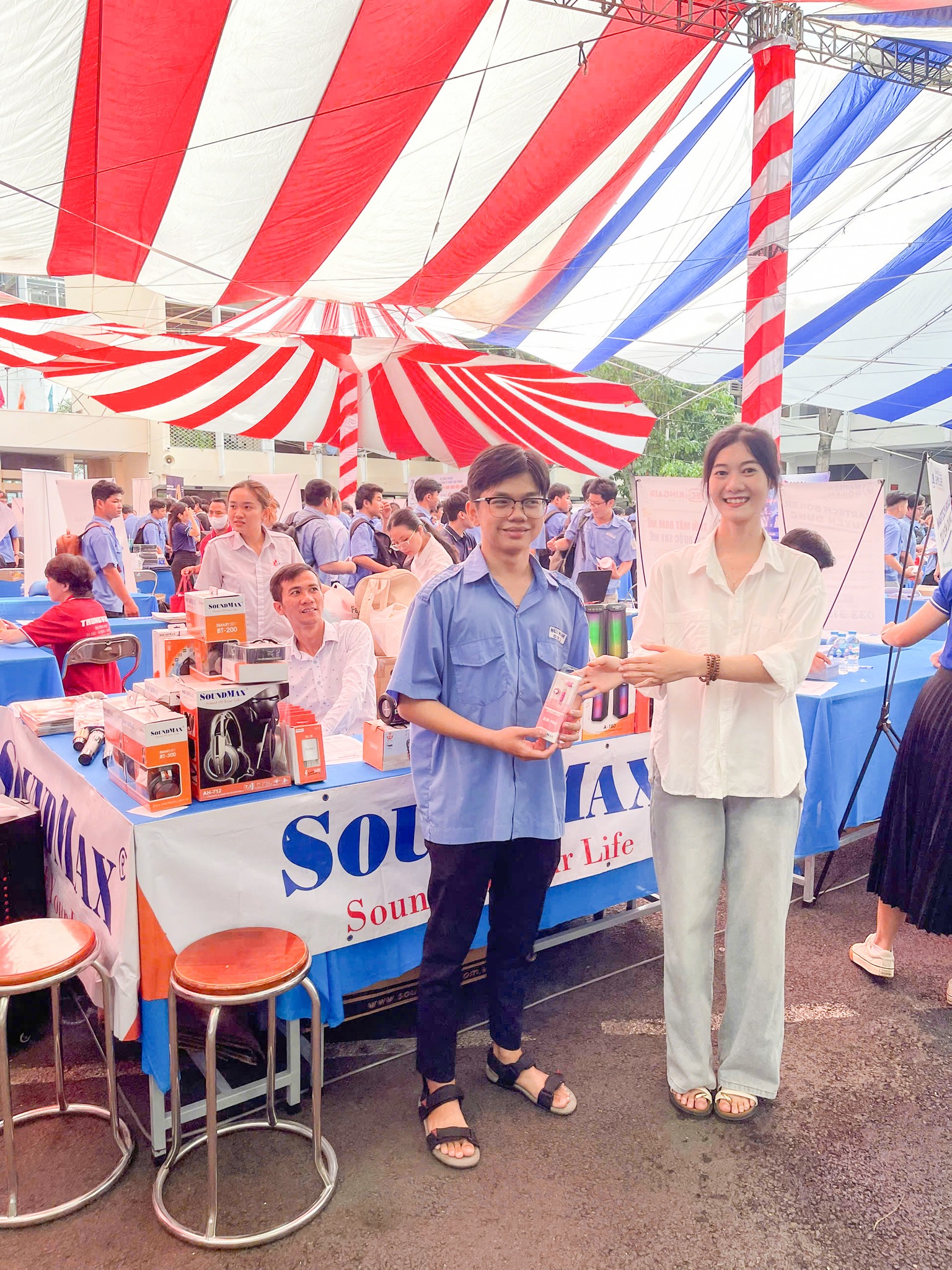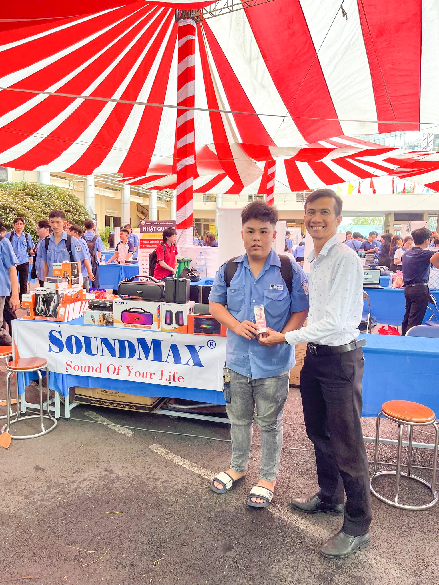 SoundMax – thương hiệu âm thanh uy tín – cũng góp mặt tại ngày hội với gian hàng trưng bày các thiết bị âm thanh cao cấp, thu hút đông đảo sinh viên đến trải nghiệm thực tế. Không khí tại gian hàng trở nên sôi động nhờ vào các minigame tương tác, hoạt động tặng quà và đặc biệt là phần hát karaoke cùng các mẫu loa SoundMax như M-66, M-33, M7..., mang đến không gian giải trí đầy màu sắc, góp phần tạo nên dấu ấn riêng cho sự kiện.