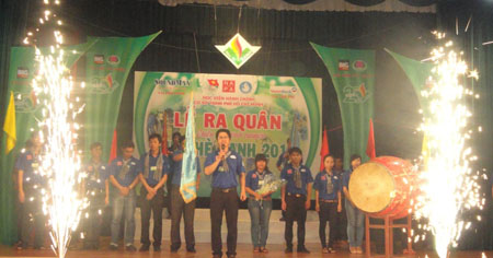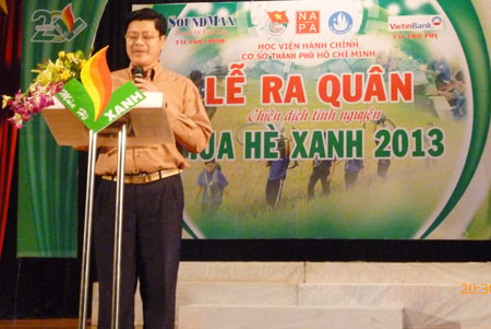 Thầy Phạm Quang Huy – Phó Giám đốc Học viện Hành chính cơ sở TP. Hồ Chí Minh phát biểu tại lễ ra quân.