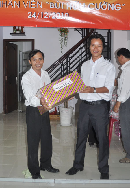 Đại diện Phòng Kế Toán và Phòng Nhân Sự trao quà cho anh Bùi Hữu Cường